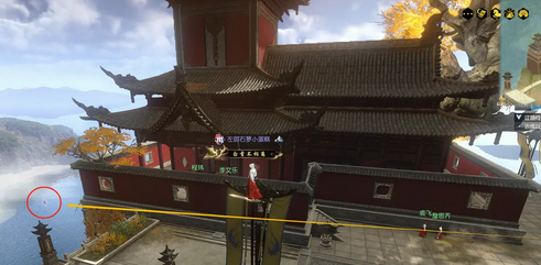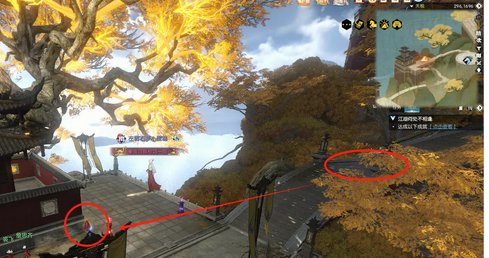 1、先在【岛内传送】NPC位置传送到【金风细雨楼】位置;