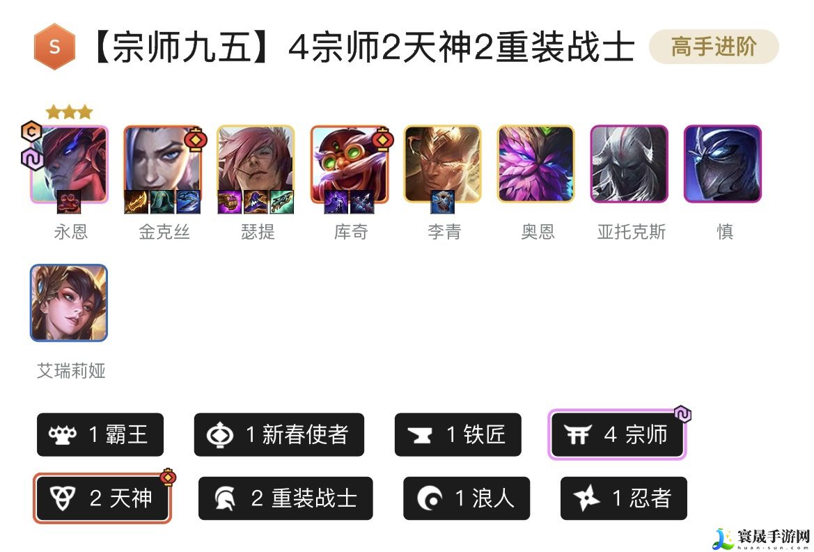 1霸王、1新春使者、1铁匠、4宗师、2天神、2重装战士、1浪人、1忍者
