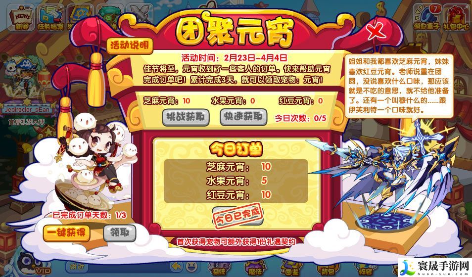 2月23日洛克王国团聚元宵活动怎么做,活动完成的奖励是宠物元宵,只需要去帮助完成订单就可以得到奖励,需要完成三天订单,下面就来介绍下2月23日洛克王国团聚元宵活动怎么玩。