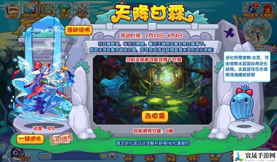 当进度累计达到100%就可以开启:蓝漪水灵 超进化资格!