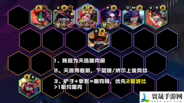如果有2星约里克,优先约里克当主C,强度会比波比高很多。装备被优先拿朋克转,其他装备随便搭配。