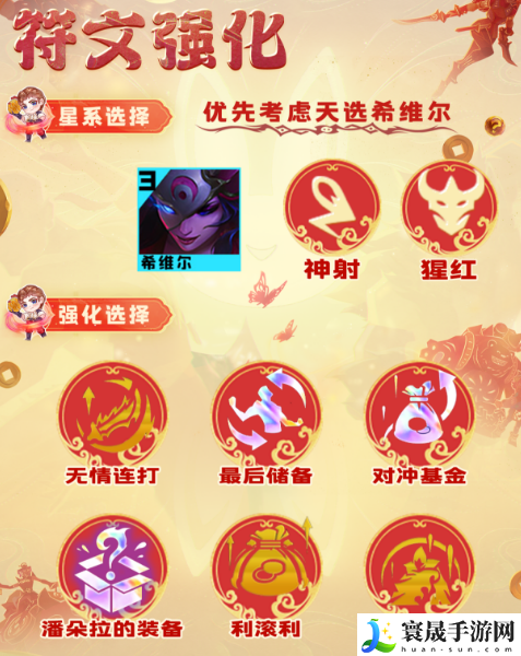 希维尔是靠普攻打伤害的英雄,因此稳定输出就非常重要,羊刀和水银尽量做,夜刃防止被秒,巨人捕手、锐利之刃、无尽之刃增加伤害。