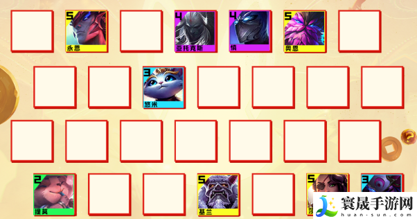 1、阵容组成:提莫、悠米、希维尔、刀妹/永恩、剑魔、慎、莎弥拉、基兰、奥恩