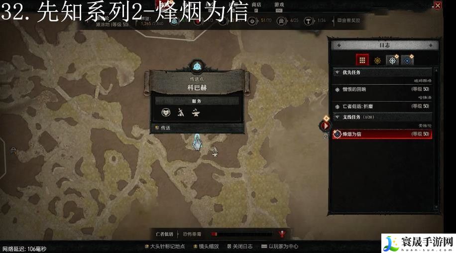 暗黑破坏神4烽烟为信是先知系列2支线任务,想要完成本次任务我们先来和先知贝温交谈,本次任务在科巴赫,需要我们先将自己传送过去,然后需要了解到羊头人的位置,接下来看看先知系列2烽烟为信支线任务我们是怎么过的吧!