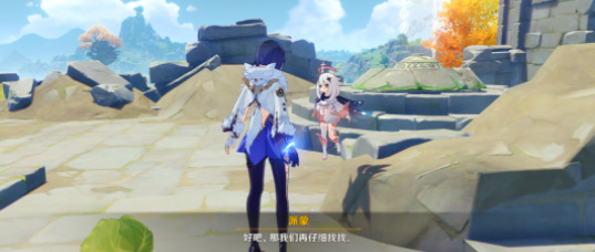 2、接着我们来到归离原搜集调查点,两处都没有会和派蒙对话,我们选择继续找找会出现丘丘人,清理后会获得沉重的盒子;
