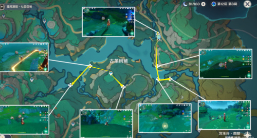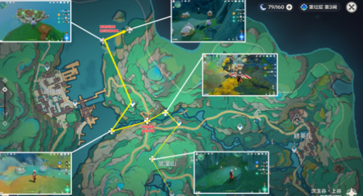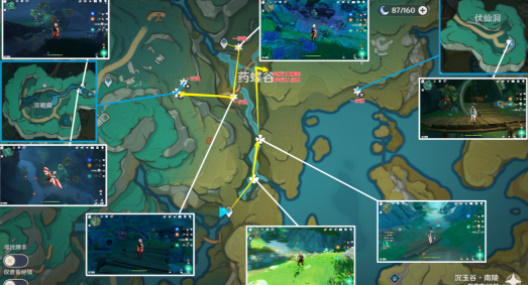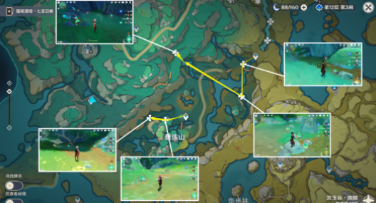 五、大世界BOSS隐山猊兽附近点位有7个,采集路线如下图所示。