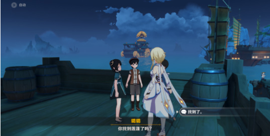 1、第一阶段玩家需要来到璃月港的港口船上与孩子们要我们扮演海盗陪他们玩游戏;