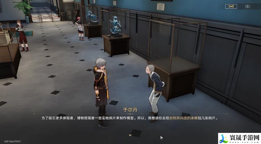 4、接着我们携带着照片回到历史文化博物馆当中,与于尔丹进行对话即可。