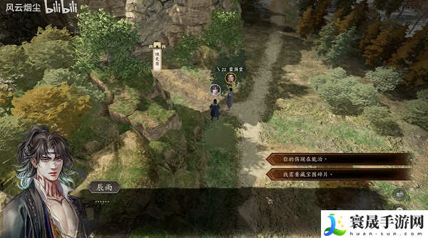 2、之后前往枫林瀑布的附近位置,可以找到洪涛对话,再去大欢喜楼前面一段距离找洪涛再次对话;