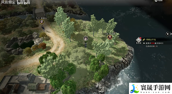 2、之后前往枫林瀑布的附近位置,可以找到洪涛对话,再去大欢喜楼前面一段距离找洪涛再次对话;