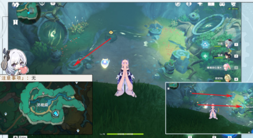 1、玩家首先传送药蝶谷锚点,往地图的南方向走,跟随洞口仙灵前往灵枢庭,获得一个普通的宝箱;