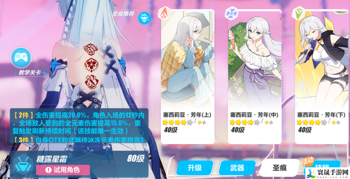 ✦圣痕:圣痕首选毕业装塞西莉亚套,其次是无瑕之人套、柳柒套、芭丝特套或次生银翼套。