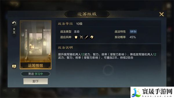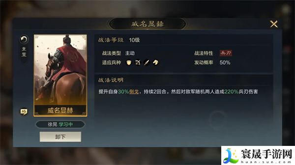 3、[徐晃]装备推荐:如有神助(关键)、威名显赫。