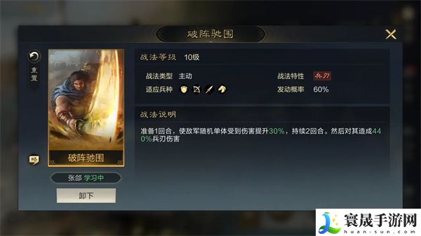 2、[张郃]装备推荐:锐不可当(关键)、破阵驰围。