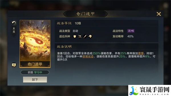 2、[郭嘉]装备推荐:出其不意(最优)、奇门遁甲。