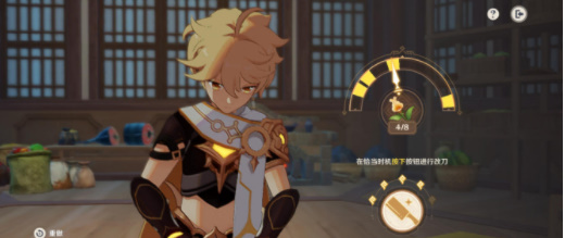 第五步:第一个环节改刀,与我们做饭差不多当指针处于黄**域时点击按钮即可;