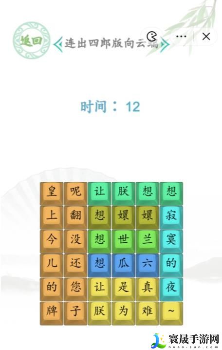 汉字找茬王连出四郞版向云端关卡挑战还是比较简单的,我们只需要将这次的四郞向云端歌词按正确的顺序连成线就可以得到一首好听的歌曲,接下来让我们一起来看看应该如何连线吧!