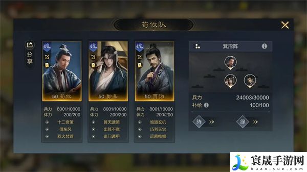 3、[荀攸]装备推荐:东风(关键)、烈火焚营。
