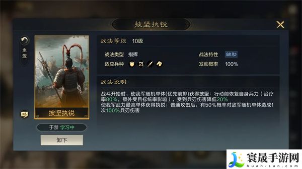 1、[于禁]装备推荐:横征暴敛(必带)、披坚执锐。