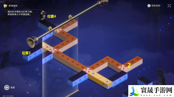 (2)将2蓝色模块点击旋转1次,将3镜子往左下移动,使4位置拼接到一块,【钟表小子】会从位置2到位置3,解密完成。