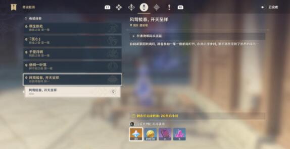 1、首先需要完成本次活动海灯节第一阶段的剧情任务【风莺梳春,开天呈祥】。
