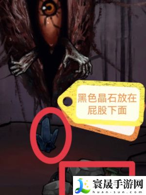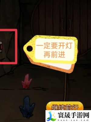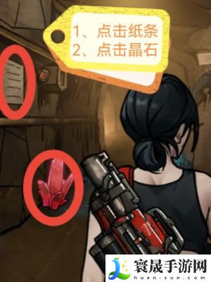 3、进入矿洞后我们点击墙上的纸条了解到游戏规则,接着点击地上的红色水晶;