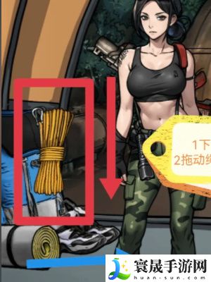 2、接着我们下滑帐篷中的背包,从中找到绳子将其移给队友,然后再右滑抽屉找到药品。