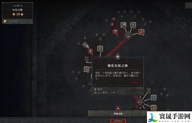 分支技能点出“强化先祖之锤”与“狂怒先祖之锤”,进一步提升怒气值与伤害值。