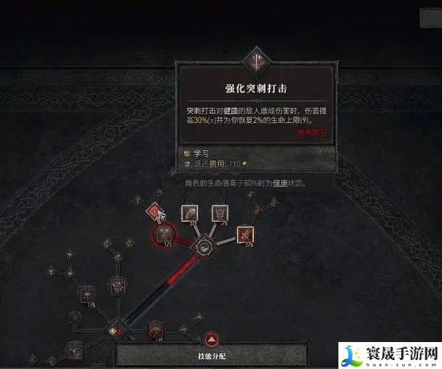 分支技能点出“强化突刺打击”与“争斗突刺打击”,提升恢复能力与狂暴效果。