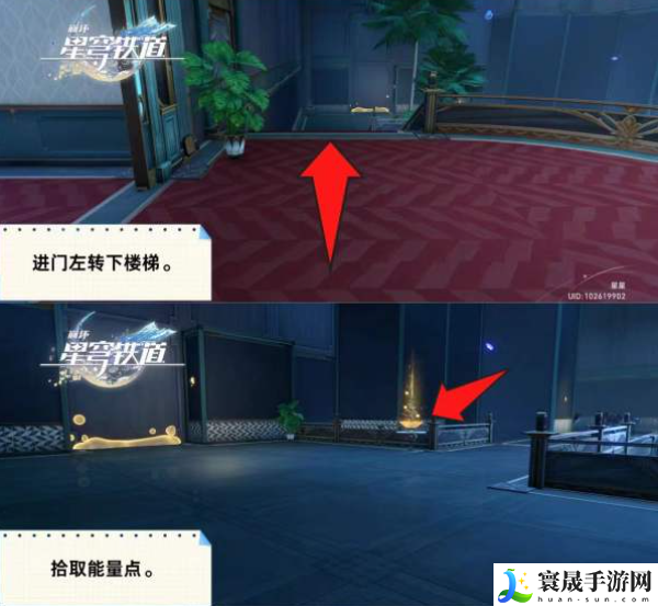 2、从下方图片所示的位置进入,之后再向左拐并下一段楼梯,可以看到能量点并拾取。
