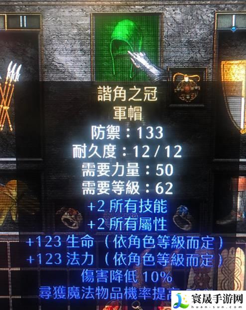 更不要说军帽还有一大堆的使用效果,全面提升生命值、全属性,获得额外的减伤和冷却缩减,还能提升材料掉率,这件装备成了玩家必备的工作装,无论是哪个水平的玩家都需要它,其他暗金或者传奇头盔与它相比都逊色许多。