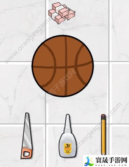 场景一:拖动锯子给篮球,拖动钱给篮球,涂上胶水,再拖动铅笔给篮球
