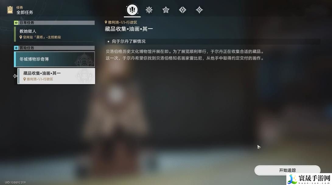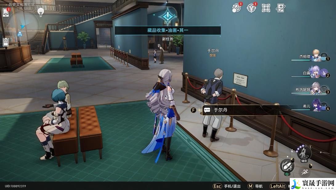 1、首先我们需要完成任务【向于尔丹了解情况】,跟随任务指引找到油画展览处的于尔丹。