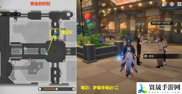 2)接着来到【黄金的时刻】下图位置【旁听】后,获得【笔记:梦境寻母记·二】