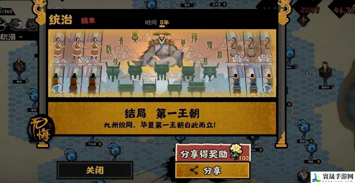 完成第一王朝结局能够直接解锁大禹治水结局,保证连通黄河口或淮河口,并且点出涂山会盟即可。