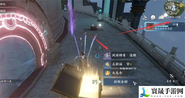 5、【戏彩】:在坐标(1437.1080)处开启宝箱获得。