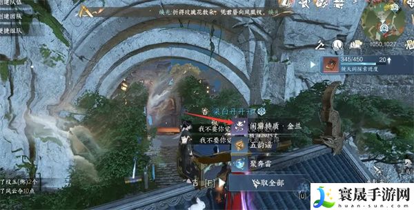 6、【金兰】:需要完成四个追花瓣挑战。四个花瓣的坐标是(1083.1060)、(1003.979)、(1102.958)、(1046.938),然后开启(1050.1027)处的大宝箱获得。