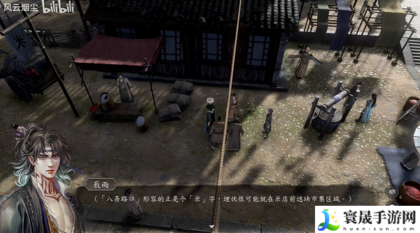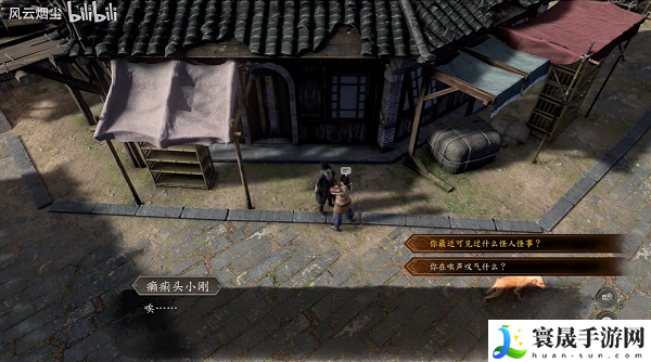 5、之后和癞痢头小刚对话,帮他送信,去衙门广场等待司马敏过来,选择“恶虎煞天”,“七月七日,子时,郊外长亭”。再回去得知暗语“八条路口”,那人留着长发,下巴缺了一块。地点在米店老板这里,在附近探索,发现伏兵——云游僧人。