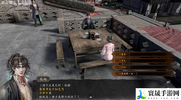 6、然后找蝨子徐,帮他打赢3个流氓,获得纸条消息——豪客书生少妇乞丐,子卯午酉。巳时酒楼的消息。午时有美丽少妇。酉时有个乞丐。前往状元楼旁边的露天酒店找到伏兵——书生。