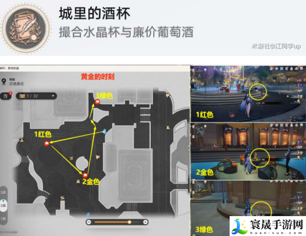 (1)来到地图【黄金的时刻】,3个颜色的酒瓶位置【旁听】,最后会有3个选项,不同的选择,现实第2天3个颜色酒瓶出现的位置会不同,同时获得的成就也会不同,当现实第2天依次找到3个颜色的酒瓶后,就能获得【开杯畅饮】贴纸了,成就是第2天找到第1个颜色的酒瓶后就能获得,属于【与你同行的回忆】