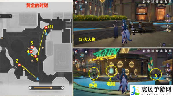 3)接着追踪任务先去下图3位置【旁听】后,再去4电视机位置【调查】一下,最后找5位置和【费曼】对话后开始【辩论】
