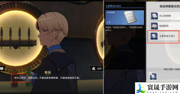 4)点击3次【下一句】到【但平心而论】时,【出示】证据,选择第3个【圣甲虫计划】提交后,即可【辩论】成功,最后再回去和【波奇】对完话,该任务结束,就能获得【大人物】贴纸了