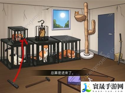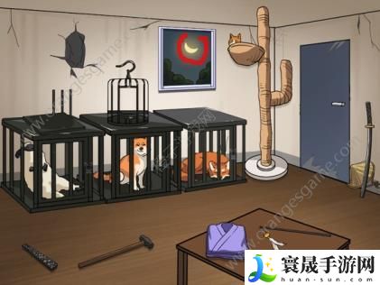 2.拖动左下地上的锉刀至小熊猫的铁笼右上角最近的裂缝处,获得钥匙,再拖钥匙至关小熊的铁笼处。