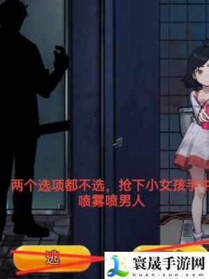 4、最后再卫生间中出现选项,我们不做选择,而是抢下小女孩手中的喷雾喷男人;