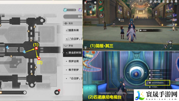 ②匹诺康尼电视台:和【爱德华医生】对话,选择【我有些梦想推销给你】,如果没有这个选项,就退出重登或者做完花火同行任务【假面双人舞】或者做完【哈努兄弟越狱记】后重登再来看看