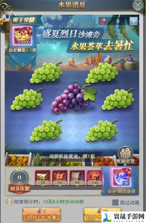 切分水果达到指定次数可领取对应切分进度奖励,若活动结束时未领取会以邮件发放;