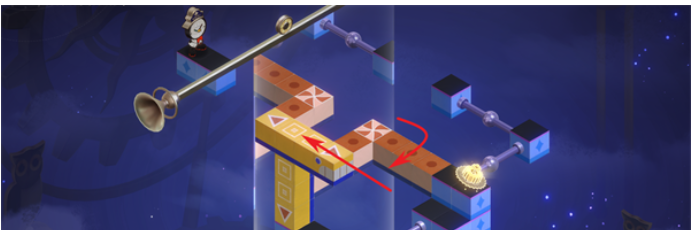 3.之后把黄色竖块向上移,再把镜子向左移(如图)。
