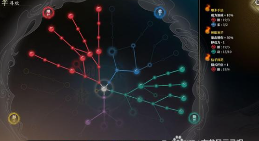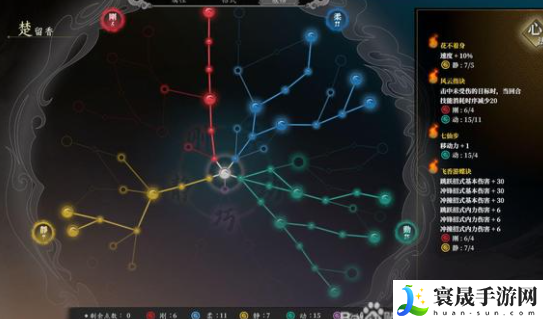 先从柔说起:这一作游戏,回蓝的天赋都很重要。内圈闪避10%回蓝,外圈攻击时自身移动回蓝,这两个天赋基本能确保楚留香不缺蓝。同时点出闪避获得回春和补气,充分利用自己闪避高的特性,增加续航。
