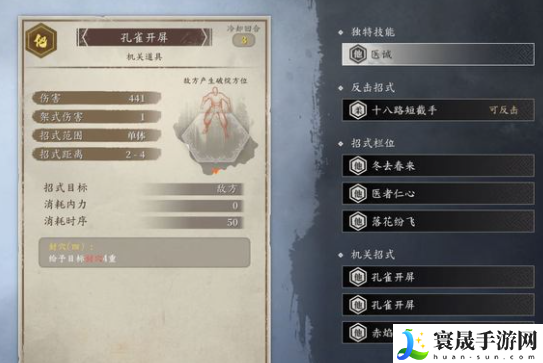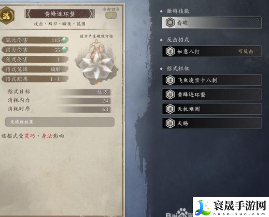 另外一个是黄蜂连环螫(查了一下,这个字念shi第四声),这个技能吃灵巧身法,虽然本身只有1点架势伤害,但是能制造全方位破绽,如图。