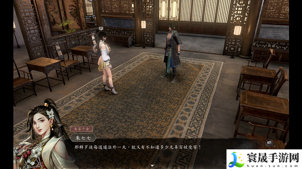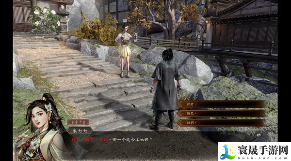 好感度到达自动会接取,玩家去和朱七七对话,在对话中要进行选择:选【厨艺】获得朱家七味饮、选【诗词】获得朱女侠闹庄、选【丝竹】获得七仙女行曲。